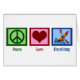Um sinal de paz, coração, e um caiaque na água. Cartão de Kayaking Com Paz.