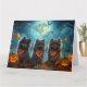 Libere o espírito assustador com esta design sombria do Dia das Bruxas apresentando um bando de cachorros sob um céu escuro e iluminado, cercado por morcegos voadores e abóboras brilhantes. Perfeito para aqueles que amam um toque de diversão terrível com seus amigos peludos!