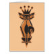 Um gato preto retrorclássico e vintage com uma coroa na cabeça. Cor de laranja preta e vintage.