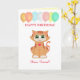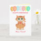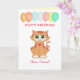 Ginger Kitty Cat Aniversário deseja um amigo Card. Gato bonito com balões de aniversário no cartão branco de fundo. Todos os textos podem ser personalizados.