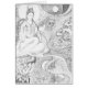 Cartão de nota com o design de Kwan Yin tirado à mão com lápis. Kwan Yin derrama para fora sua piedade à humanidade.