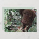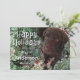 Mande alegria quente de férias com este charmoso cartão com um labrador de chocolate cercado por um verde festivo. O filtro artístico único dá à imagem uma sensação pintada, de um livro de histórias — perfeita para amantes de cães e para quem adora a magia da estação. Uma maneira doce de desejar aos amigos, à família ou aos colegas de trabalho um feriado muito feliz! Mantenha fotos ou personalize com sua foto favorita, mude de saudação, nome e ano.