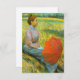 Este design apresenta uma pintura do Impressionista Italiano Federico Zandomeneghi (1841-1917). Mostra uma jovem elegante descansando em um belo campo verde de grama. Ela está vestindo uma blusa rosa e uma longa saia verde; em suas mãos ela está vestindo luvas de seda brancas e segurando um parasol vermelho no colo. Seu cabelo está amarrado de forma elegante em um pão, e ela está olhando de forma contundente para longe. É uma cena calma e inquieta, mostrando a beleza de uma era perdida.