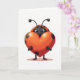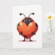 This greeting card shows a cute ladybug character centered on a plain white background, holding a big heart close to its body. The ladybug has a shiny red shell with black spots, a small black face, and wide eyes that look friendly, with a soft little smile. The heart it’s hugging is a rich red-orange color with a glossy look, and it even has a few black spots that match the ladybug’s back. Its thin black arms and tiny hands wrap around the heart like it’s giving a careful, sweet hug. A light shadow under its feet helps ground the character and keeps the scene simple and focused on the message. There isn’t any text on the front, so the picture does all the talking and leaves room for your own note inside ❤️💌. Send it with a kind message and a little chocolate spirit 🍫