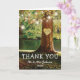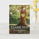 Casamento de árvore rustica obrigado cartas com uma romântica floresta e lago com uma árvore de morango vermelha, entalhe coração de amor com suas iniciais, luzes cintilantes e um obrigado.