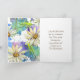 Cartão de saudação de roteiro inspirador mostra um bonito design de cor d'água floral com flores margaridas brancas e um quadro de ouro elegante em um fundo azul abstrato. Apresenta as lamentações Bíblias 3:22, "Seu amor fiel nunca acaba."
