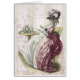 Uma placa de forma do século XVIII do vintage e um quadro rococo em um fundo listrado do cinza da pomba. Julie ©Wickedly bonita McIver