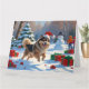 Cartão Lapphund Finlandês Correndo Neve com Chapéu de Nat