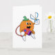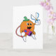 Cartão Laranja como cabeleireiro com tesoura e secador de
