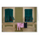 A roupa suja colorido pendura entre as janelas. Note que apenas as roupas e os obturadores verdes são reais, tudo o mais é trompe l'oeil, ou seja, uma pintura de artista.