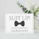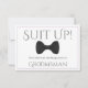 Use este "cartão de padrinho de casamento" para pedir aos seus amigos especiais e familiares para serem padrinhos de casamento no seu casamento. Projetado para coordenar com a nossa Suíte Casada Elegante de Roxos e Cinzas, ele apresenta uma imagem de uma gravata de arco preta e diz: Encaixe! Seus Serviços são Solicitados como Padrinho de casamento" Há um espaço para inserir uma nota especial perguntando "você será meu padrinho de casamento?" assim como os nomes dos casais de casamento e a data do casamento. Todos os campos são totalmente personalizáveis.
