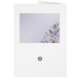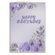 Este cartão de aniversário sonhador da The Botanical Press é adorado com delicadas flores de aquarela em tons de lavanda, lilás e violeta suave. Enquadrando um clássico "Parabéns" em um guião roxo correspondente, o design irradia beleza pacífica e charme de eterno. Com um fundo legal e cantos florais graciosos, é perfeito para enviar desejos de aniversário corajosos com um toque calmo e elegante.