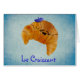 Croissant francês bonito. Este é Croissant francês clássico mas nao usual. Hetero fresco e friável da padaria francesa de Paris. Mas quando você vê seus bigodes do sorriso e do rico com boina azul, você sabe simplesmente que é francês típico. O Croissant bonito de Kawaii é o melhor design para todo o fã do pequeno almoço francês.