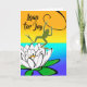 Leap for Joy, cartão de saudação de papel com um sapo saltando de um lírio de água. Mande um pouco de alegria, alegria e encorajamento com este brilhante e colorido design. Arte, imagem e direitos de autor versos © Shoaff Ballanger Studios, 2022.