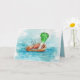 Há um leek no barco com um vazamento. Um trocadilho duplo e engraçado com um legume de cebola, sentado num barco vazado, cercado por água azul e céu. Watercolor Drawing Design por Irony Drawing Art Design Donna Léger. Todos os Direitos Reservados.