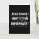 Divirta-se com esse poderoso "Eu li em Braille O que é seu design de superpotência", ou dê-o como o presente perfeito para seus amigos e família para o próximo mês de literacia em Braille.