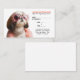 Mantenha a agenda de limpeza dos seus clientes no bom caminho com o nosso cartão de lembrete de compromisso de remoção de cães. Adorado com um na moda, design elegante de Shih Tzu em cores brilhantes e alegres, este cartão é uma forma excelente de lembrar aos clientes a próxima consulta de preparação de animais de estimação. Suas cores atraentes e gráficos bonitos serão apreciados pelos ocupados donos de animais de estimação que apreciam uma mistura de capricho e praticidade.
