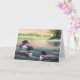 Cartão de Saudação de Arte por Aquarela do artista Jean Weiner "Manning Conference Call" apresenta os pulões que planeiam ao longo do lago de manhã cedo. Os seus intrincados padrões de penas preto e branco são tão rigorosos. Estes padrões refletem-se na superfície da água. O nevoeiro está a levantar-se à medida que o sol nasce. Esta design vai deliciar qualquer natureza ou amante de pássaros!