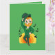 Carrinho Saudável com uma Ilustração de um duende sorridente e alegre dançando vestindo um terno verde, uma gravata arco e um chapéu de boliche; com notas negras e um arco-íris amarelo e laranja em fundo verde. Uma design perfeita para celebrar o Dia de São Patrício!