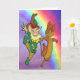 Cartão Leprechaun e Mouse dançando com o Rainbow