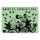 Rua Negra Irlandesa. O Leprechaun do Dia de Patrick tocando uma flauta em um Black Vintage Retro Suit Dancing an Irish Jig enquanto ele toca seu instrumento musical em uma Irish Tune Musical Notes balançando prestes a comemorar este feriado divertido honrando todas as coisas irlandesas e celtas. Os pássaros negros voando prestes a representar os irlandeses negros tão pouco se sabe sobre eles.