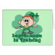 Características que de design bonitos do dia deste St Patrick um leprechaun pequenino se vestiu no verde em um fundo do trevo com o subtítulo o "Leprechaun no treinamento."