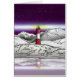 Uma ilustração paisagística do Farol Les Eclaireurs, na Argentina. Esta design tem um céu noturno roxo e uma cordilheira refletindo no oceano calmo.
