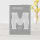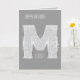 Encanto cinzento de prata do brilho do falso do monograma da letra M personalizado com o cartão de aniversário conhecido