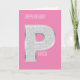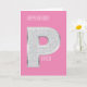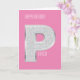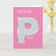 Cartão de aniversário personalizado com nome, monograma cinza, brilho falso, glamour, letra P prata rosa