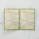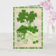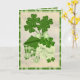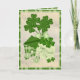 Uma borda marcada em tons de verde ao redor de um fundo creme pálido que parece papel rugoso. A decoração é um envelope com um interior verde e um cheque verde lá fora e uma nota com a saudação "Rua Feliz, Dia de Patrick". Muitas camarões em diferentes tamanhos nesta design perfeita para seus cumprimentos à família e amigos. Personalize-o adicionando seu próprio texto!