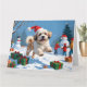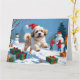 Cartão Lhasa Apso Correndo em Neve com Chapéu de Natal
