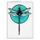 Cartão Libélula no círculo de turquesa