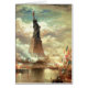 Ilustração do vintage da estátua da liberdade que está alta contra as nuvens e entre uma batalha de mar
