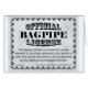 Licença Oficial Bagpipe. Há muitas atividades que envolvem diversos equipamentos, como a operação de um automóvel, avião, etc., que exigem formação e licenças especializadas. A música fazer é algo que geralmente requer treinamento: lições, prática e ensaios. Não deveria ser exigido aos futuros músicos que recebessem licença para operar o equipamento, ou seja, seu instrumento musical?