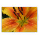 Notecard com lilly laranja escutando com gotas de chuva. Vazio para sua própria mensagem pessoal.
