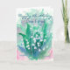 Um cartão de aniversário bonito, decorado com lírio das flores do vale, acentuado com tons de azul e rosa pintados em aquarela. Você pode mudar o texto para ajustado de suas necessidades.