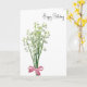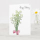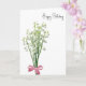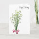 Lily do vale com um arco de cetim rosa em branco para um aniversário. Todo o texto pode ser alterado.