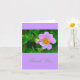 A COR DO PINCO LAVANDA DESTE ANEMONA COM SEU CENTRO DE COR MARIGOLADA QUASE SE GLOWS CONTRA A FOLIAGEM VERDE. TEXTO NA FRENTE: "OBRIGADO" (PERSONALIZÁVEL)