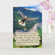 Belo Cartão de Escritura da Águia de uma cena colorida e detalhada com uma gloriosa águia-careca espalhando suas asas e voando alto no céu azul sobre um vale verde de pelúcia próximo aos pés de uma montanha. Esta cena acompanha o verso Bíblia, "Mas eles que esperam no LORD devem renovar sua força; eles devem montar com asas como águias; eles devem correr, e não estar cansados; e eles devem andar e não desmaiar." Isaiah 40:31. Este Cartão faz um presente maravilhoso ou pode ser usado para nos lembrar da Palavra de Deus.