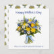 Um lindo cartão de felicitações para o Dia das Mães, ilustrado com um lindo buquê de flores da Primavera atado com uma fita azul. A saudação "Feliz Dia das Mães" aparece no topo em tipografia de letra cursiva elegante. Personalize com o(s) seu(s) nome(s) na parte inferior do cartão, para um toque individual elegante. A parte de trás do cartão é estampada com pequenos buquês. Com charme botânico elegante, este cartão é ideal para os amantes de flores e da natureza.