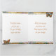 Um cartão bonito desejando a uma amiga ou familiar uma feliz aniversário com uma ilustração na frente de uma linda borboleta dourada, azul e laranja rodeada por flores amarelas, brancas e roxas. É feito com um estilo impasto e simplesmente emana beleza e graça. Dentro há um lindo poema sobre aniversários e borboletas.