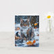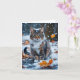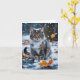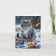Cartão Lindo gato cinza tabby Folhas de outono em branco