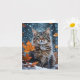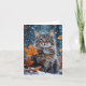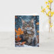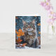 Cartão Lindo gato tabby cinza queda de folhas em branco