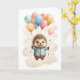 Cartão Lindo ouriço-cacheiro em aquarela flutuando no ar