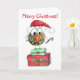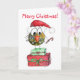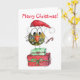Esta é uma pintura original de mídia mista de um pássaro de Natal em uma pilha de presentes.