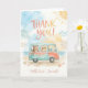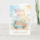 Cartão de agradecimento de verão lindo, cartão de agradecimento de animais de van da praia, Presente de Férias Costeiras, cartão gráfico pastel