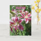 A fotografia floral da natureza, dos lírios de stargazer, e uma saudação inspiradora do amor por um amigo, compõem este cartão.
