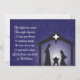 Características deste design moderno um fundo azul escuro, uma silhueta da natividade que mostra a família santamente Joseph e Mary que olham sobre o bebê Jesus no comedoiro. A parte dianteira do cartão lê: A luz veio a noite parte estrela de A proclama aos corações que procurando o tempo veio recordar quando o senhor Jesus era nascido em Bethlehem a parte traseira do cartão tem o espaço para uma mensagem pessoal.
