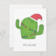Este cartão liso é imprimido com um cacto temático do Natal desenhado mão que caracteriza um chapéu do papai noel e uma festão colorida. As palavras "Feliz Navidad" (Feliz Natal no espanhol) são datilografadas abaixo em uma pia batismal cursive.