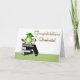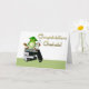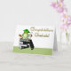 Cartão de felicitação para o formando com diploma de sapo, sentado numa pilha de livros.
